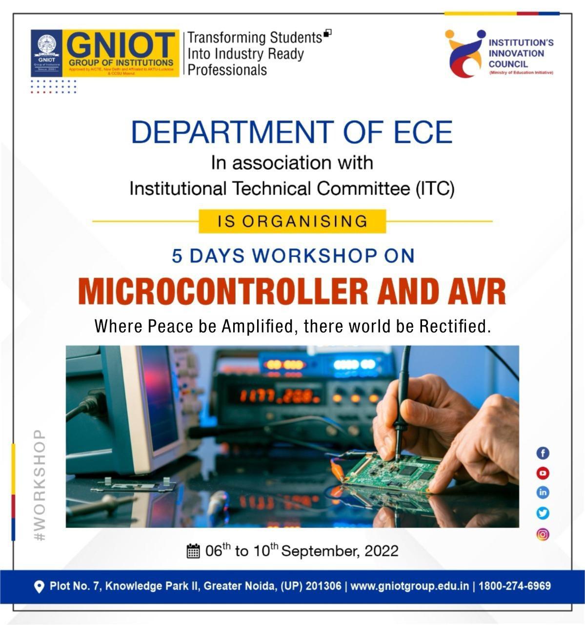 Department of ECE In Association with Institutional Technical Committee (ITC) is Organising 5 day Workshop on Microcontroller And AVR. Where Peace be Amplified, there world be Rectified